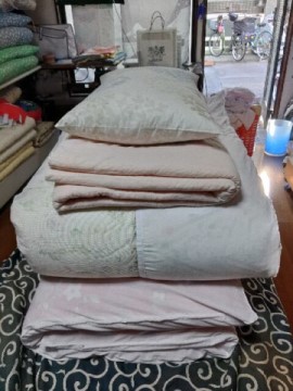 - 掛ふとん:もめんや綿混(ミックス綿)、または羽毛の掛ふとん(希少です)です。